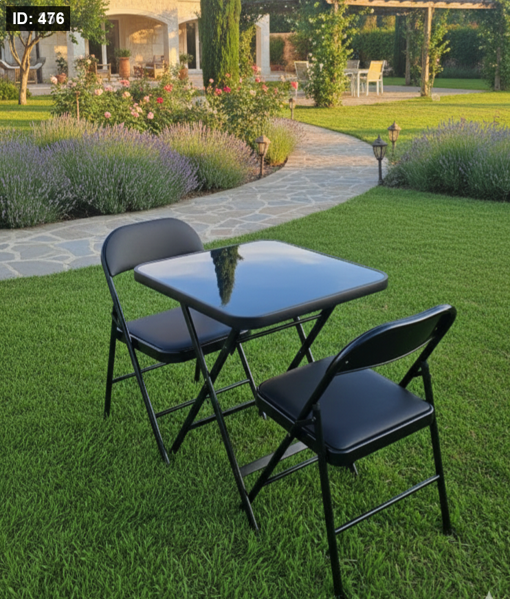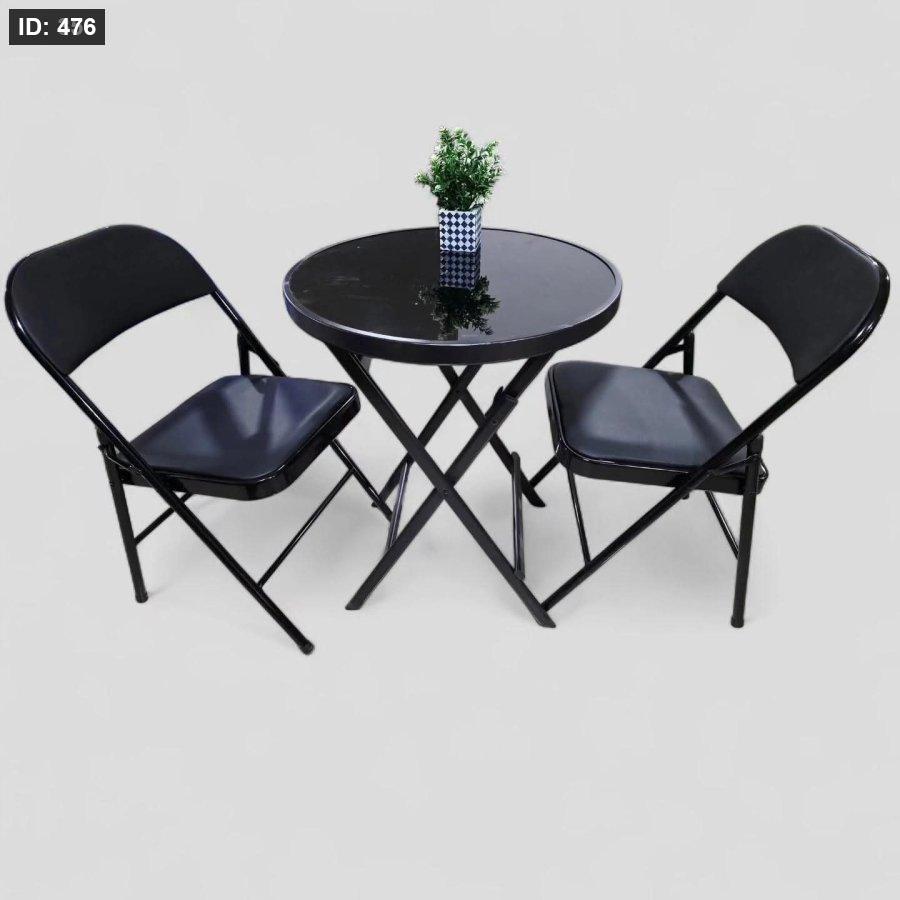 طقم طاولة زجاجية قابلة للطي مع كرسيين - عملي وأنيق.